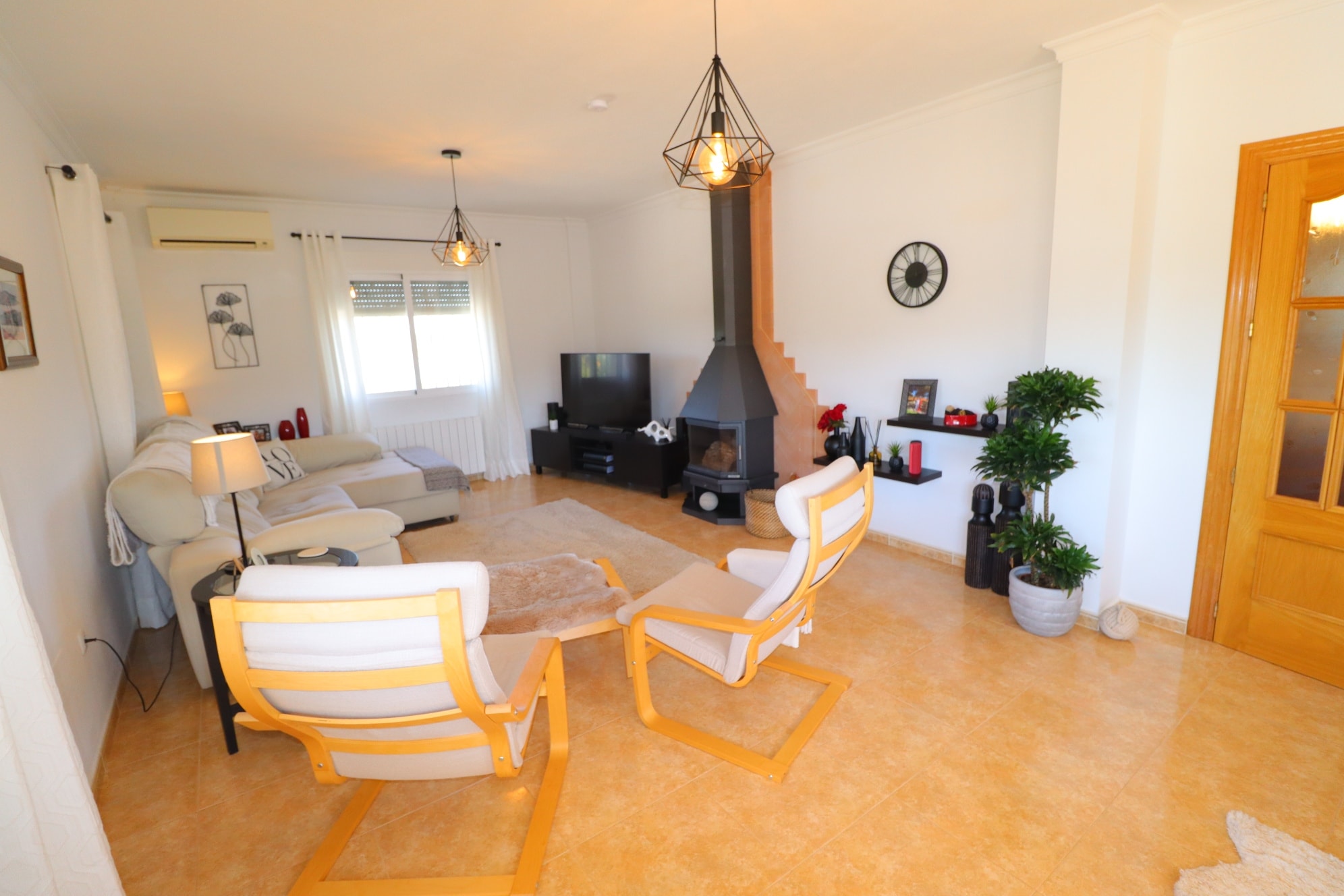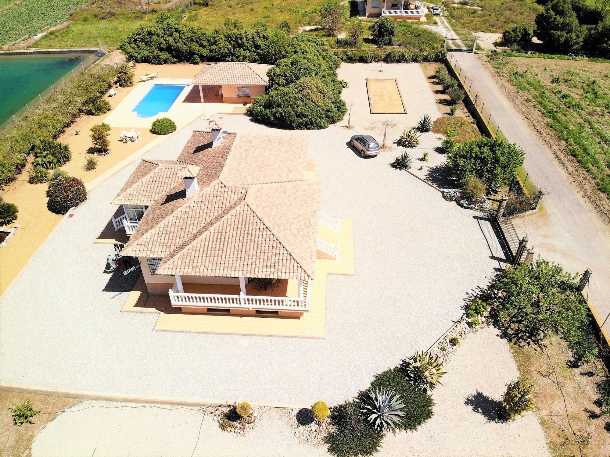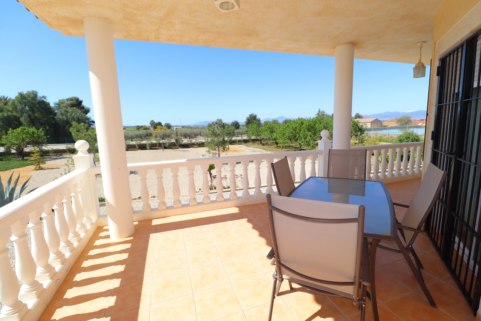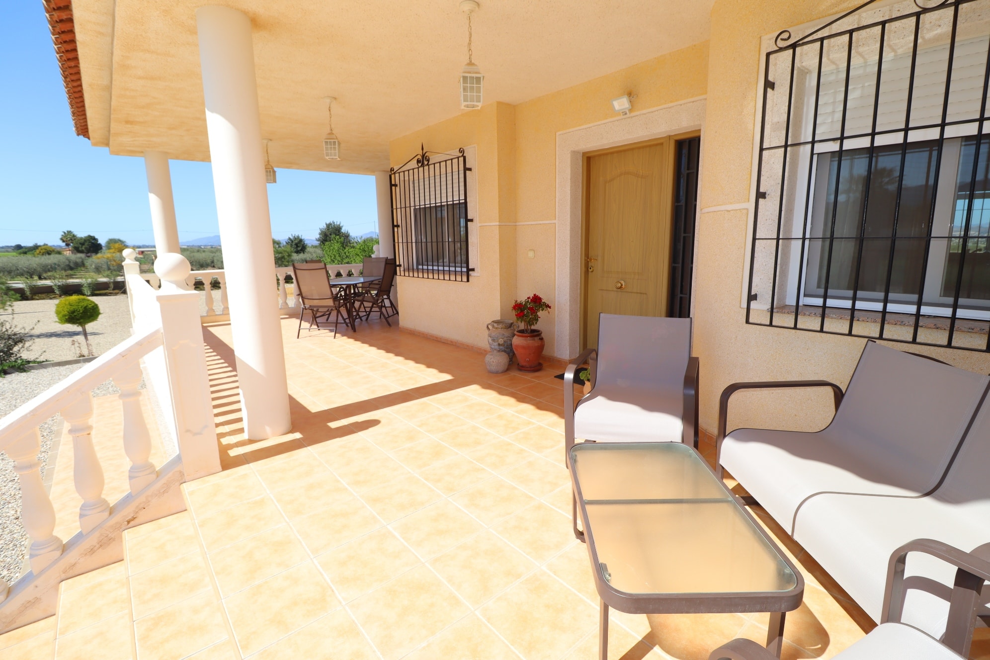 Impressive and luxury 3/4 bed 2 bath larger than average detached Villa with a massive basement/underbuild with separate garage, 11m x 5m pool, separate summer kitchen (40 m2) with full bathroom which could be used as an independent studio/apartment, oil-fired central heating, air-con in most rooms, landscaped gardens, on a fully fenced and gated plot of 5270 sq. metres of land, within walking distance to a village, 10 minutes drive to the city of Lorca with its outdoor shopping centre, and 25 minutes drive to the coastal resort of Aguilas. Stunning views across the countryside to the surrounding mountains and to the Lorca city with its illuminated medieval castle at the very top.