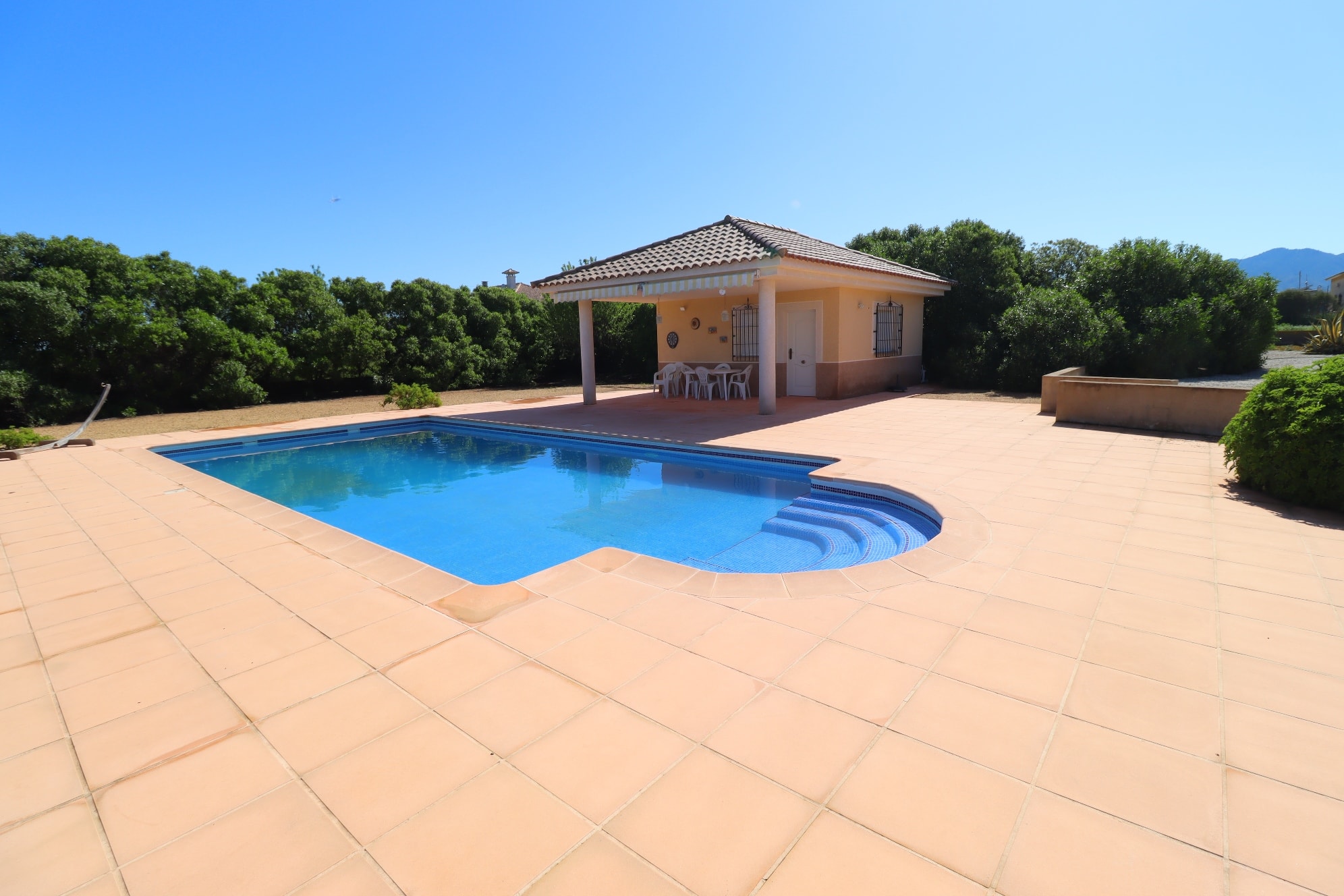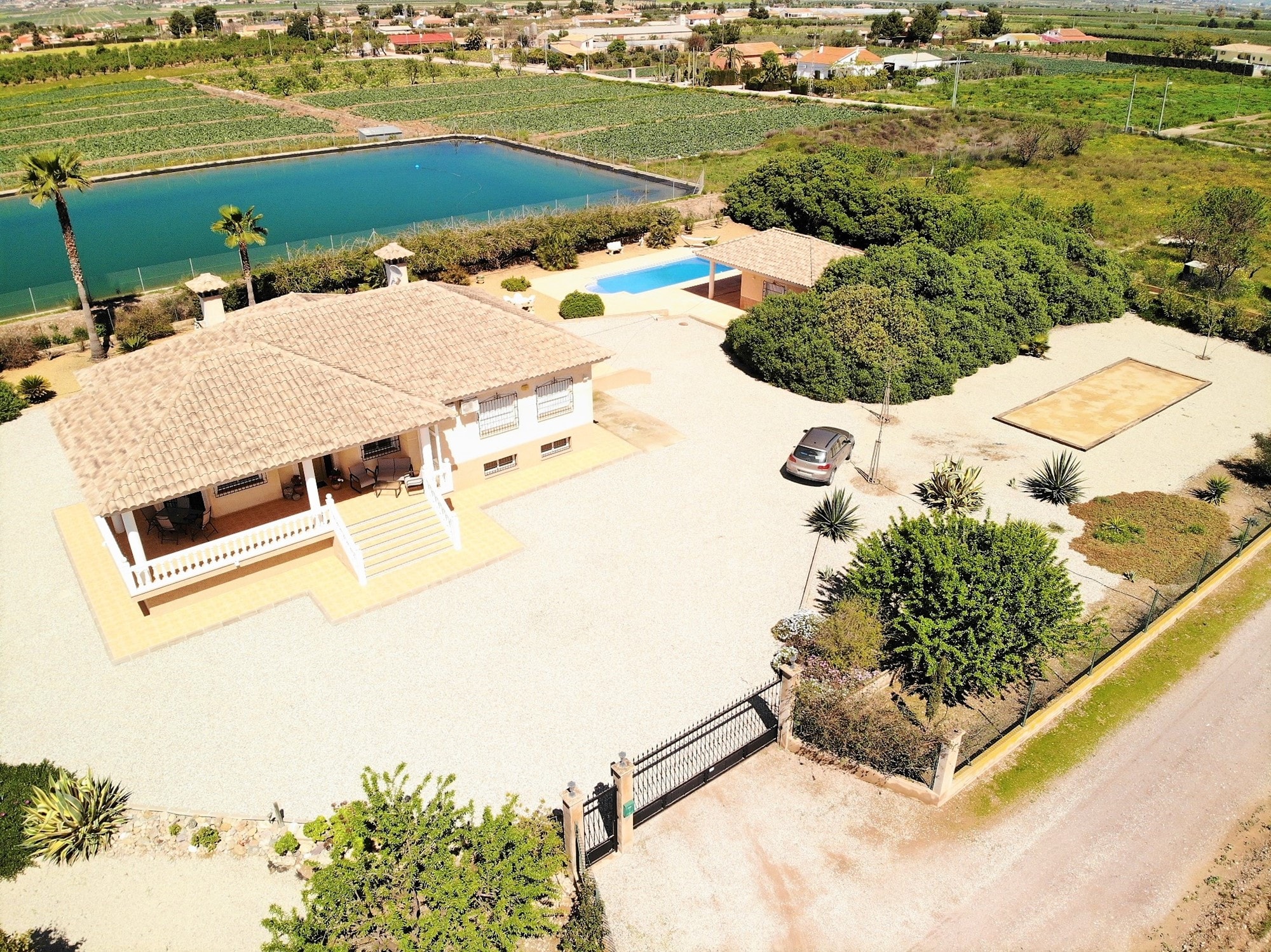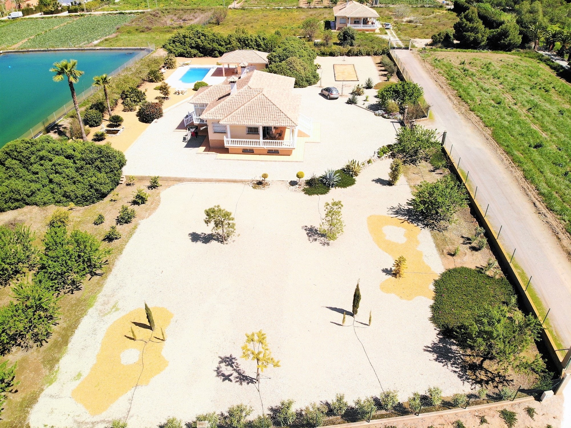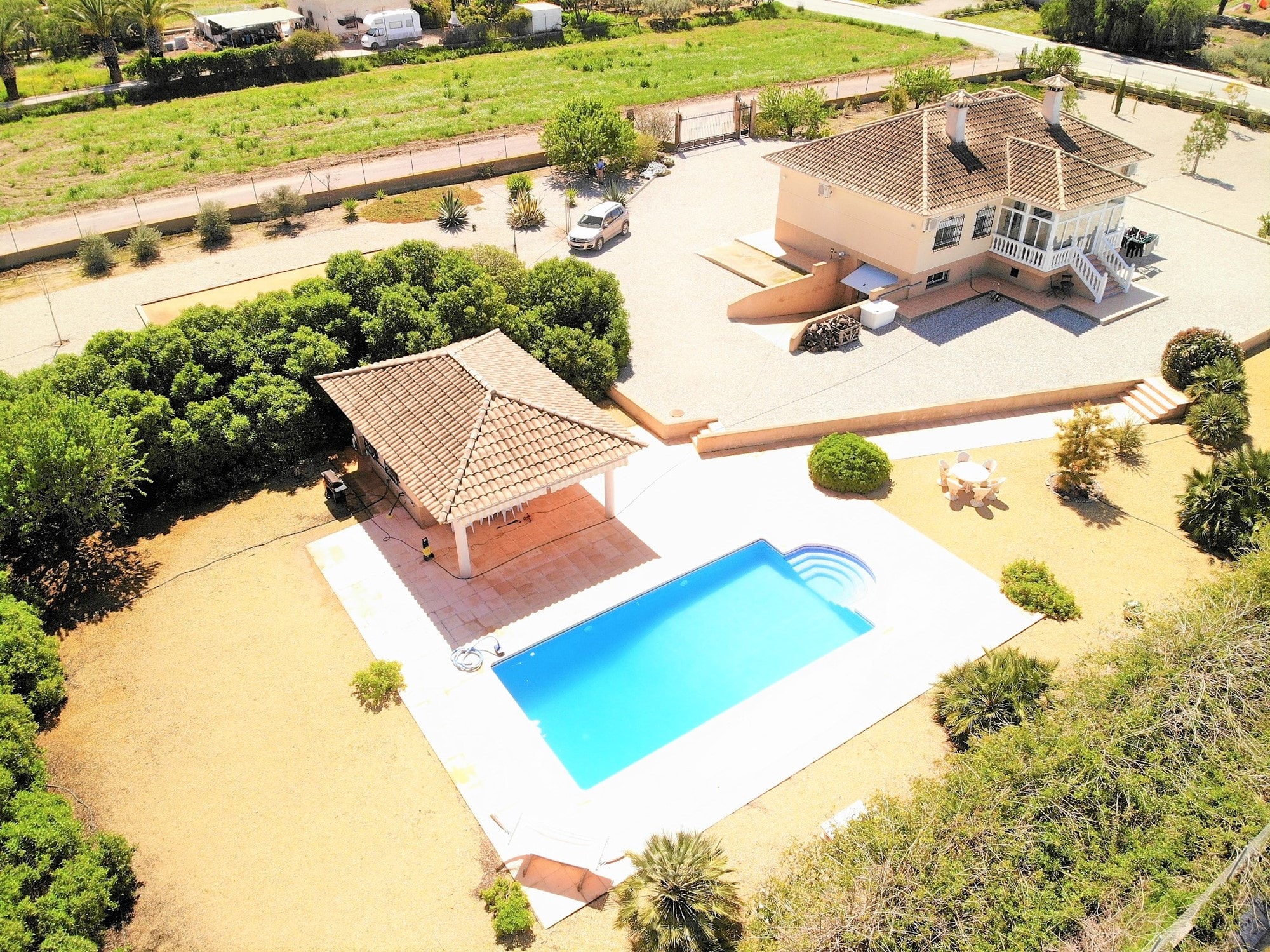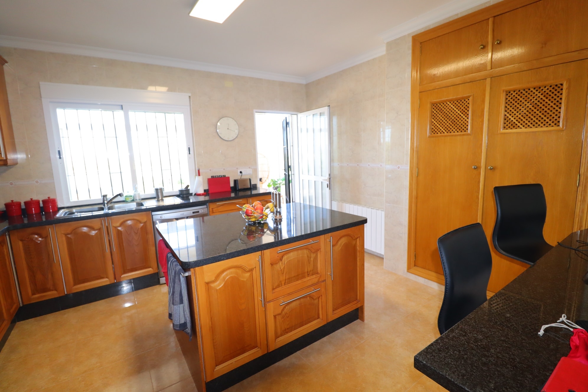 Impressive and luxury 3/4 bed 2 bath larger than average detached Villa with a massive basement/underbuild with separate garage, 11m x 5m pool, separate summer kitchen (40 m2) with full bathroom which could be used as an independent studio/apartment, oil-fired central heating, air-con in most rooms, landscaped gardens, on a fully fenced and gated plot of 5270 sq. metres of land, within walking distance to a village, 10 minutes drive to the city of Lorca with its outdoor shopping centre, and 25 minutes drive to the coastal resort of Aguilas. Stunning views across the countryside to the surrounding mountains and to the Lorca city with its illuminated medieval castle at the very top.