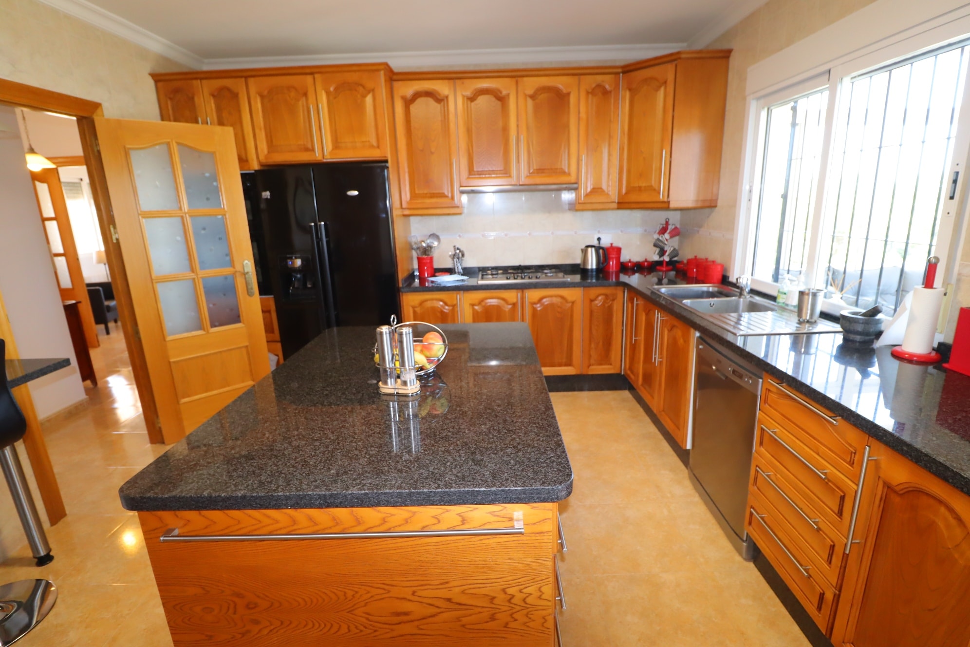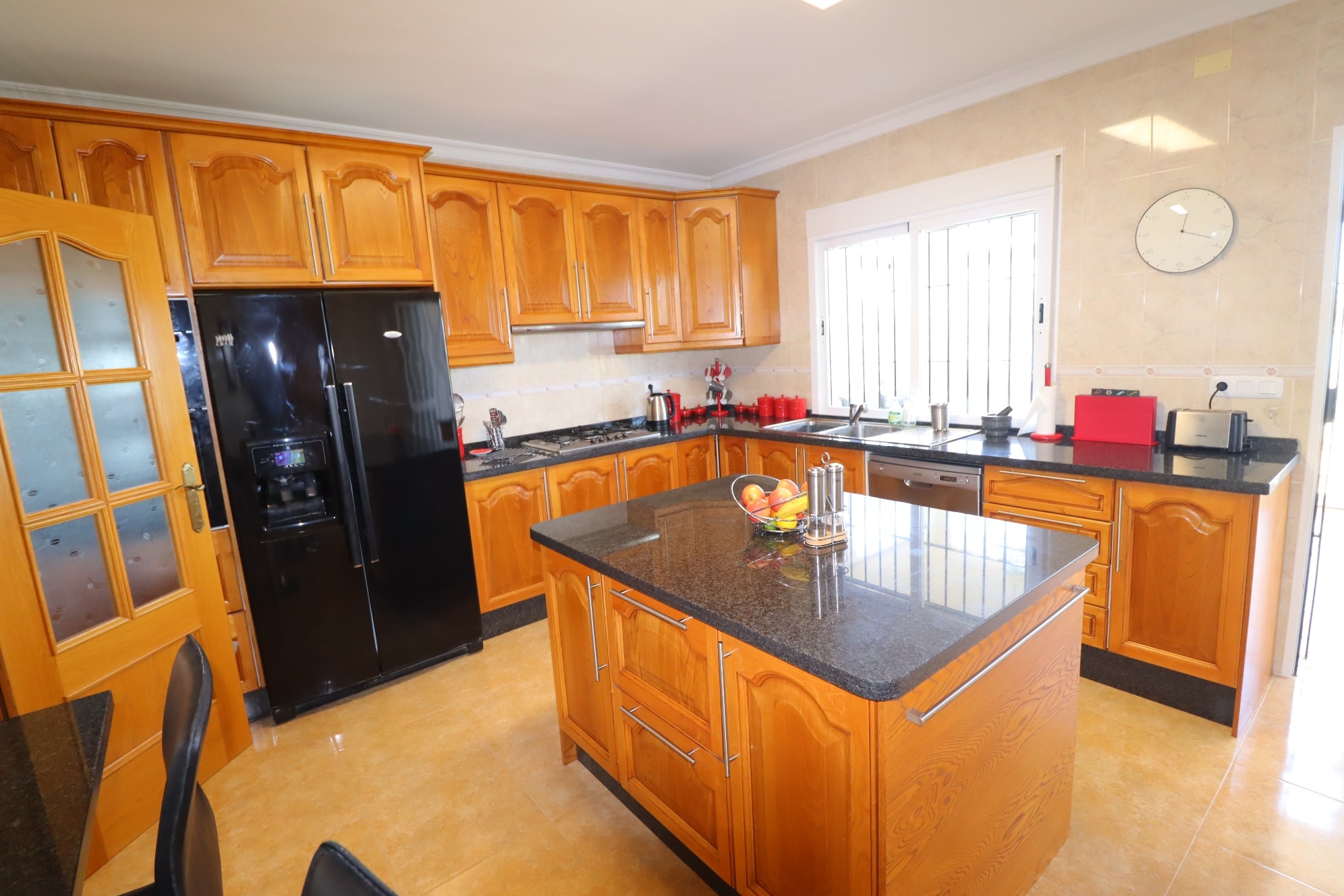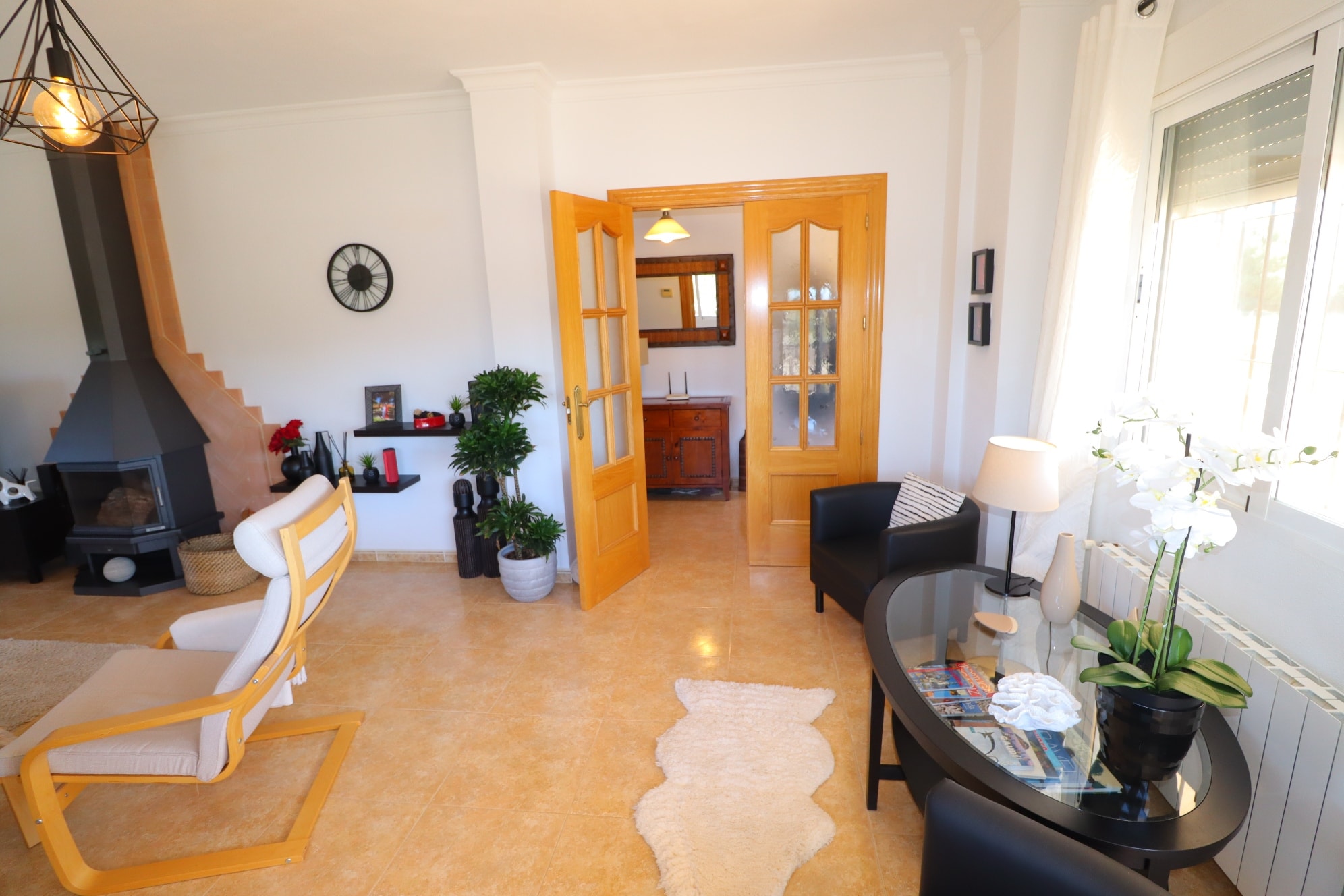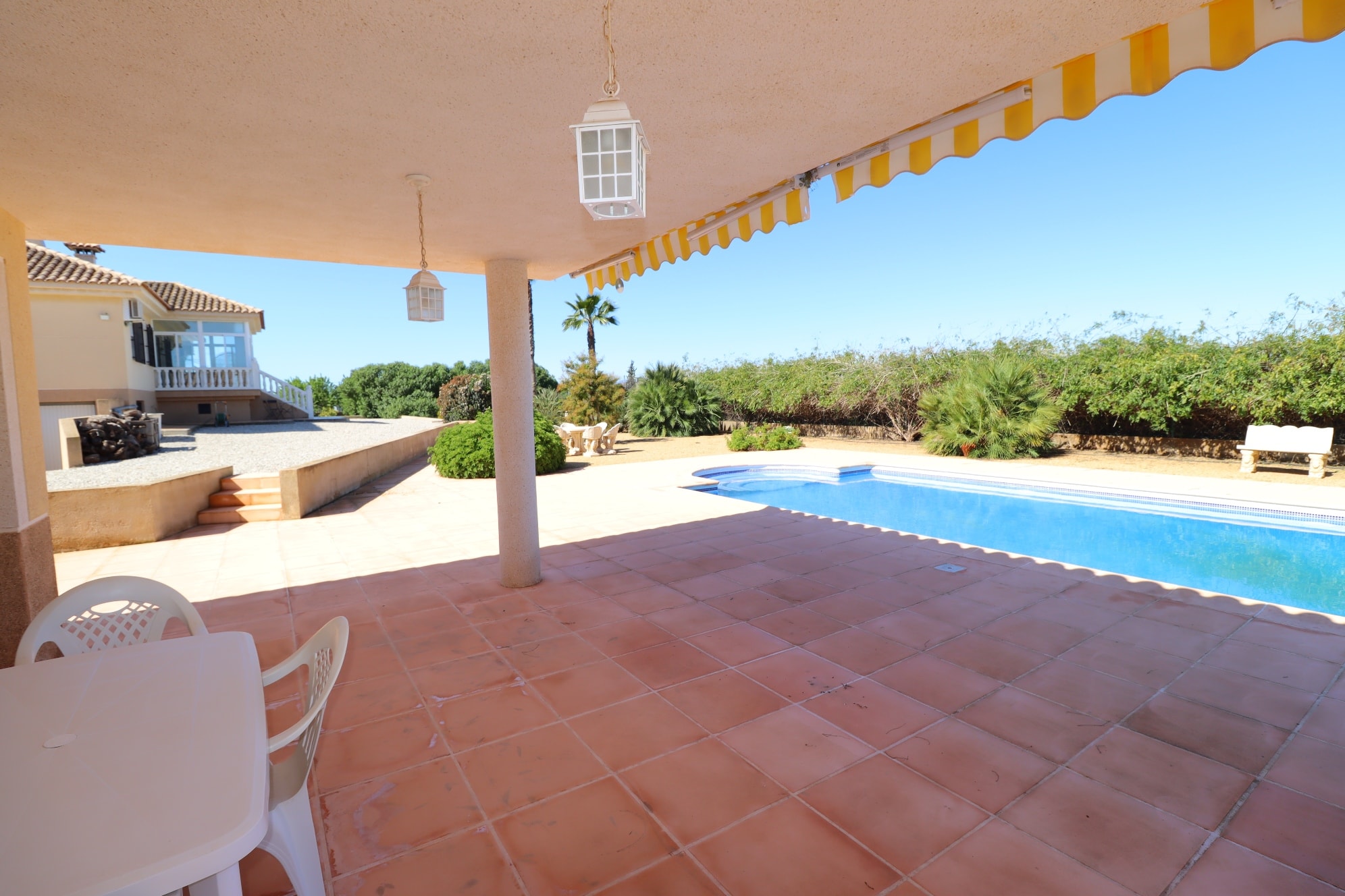 Impressive and luxury 3/4 bed 2 bath larger than average detached Villa with a massive basement/underbuild with separate garage, 11m x 5m pool, separate summer kitchen (40 m2) with full bathroom which could be used as an independent studio/apartment, oil-fired central heating, air-con in most rooms, landscaped gardens, on a fully fenced and gated plot of 5270 sq. metres of land, within walking distance to a village, 10 minutes drive to the city of Lorca with its outdoor shopping centre, and 25 minutes drive to the coastal resort of Aguilas. Stunning views across the countryside to the surrounding mountains and to the Lorca city with its illuminated medieval castle at the very top.