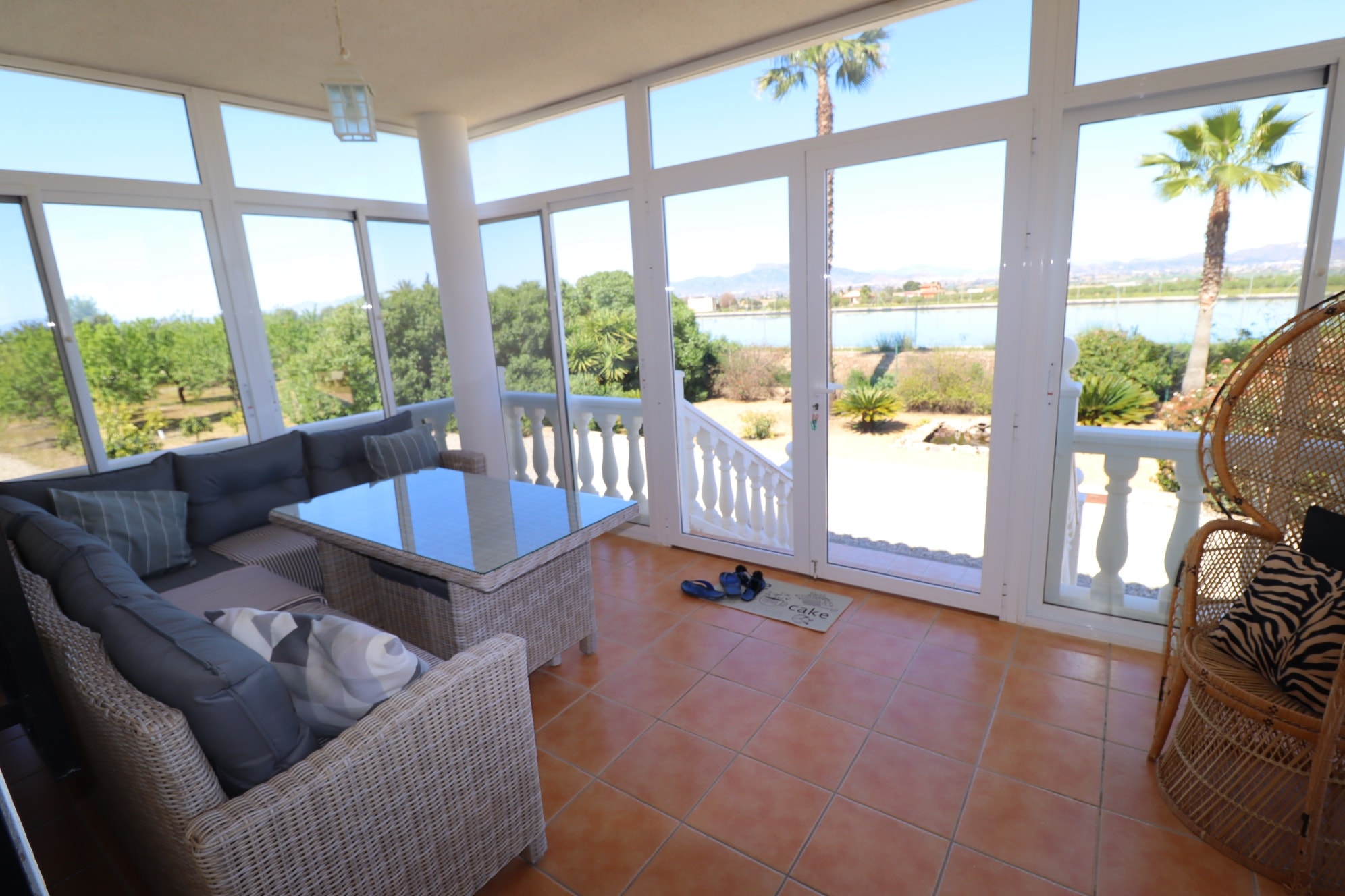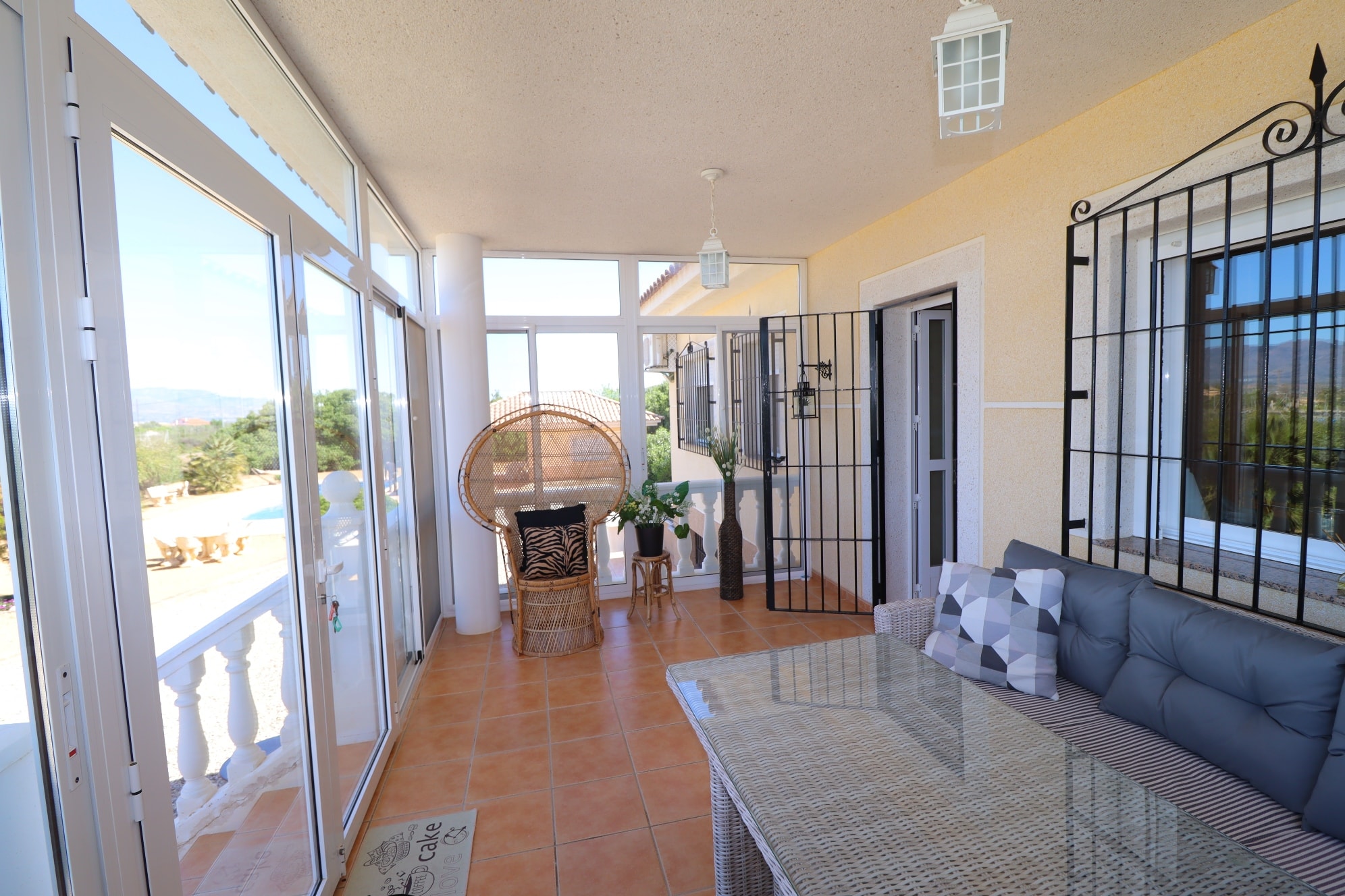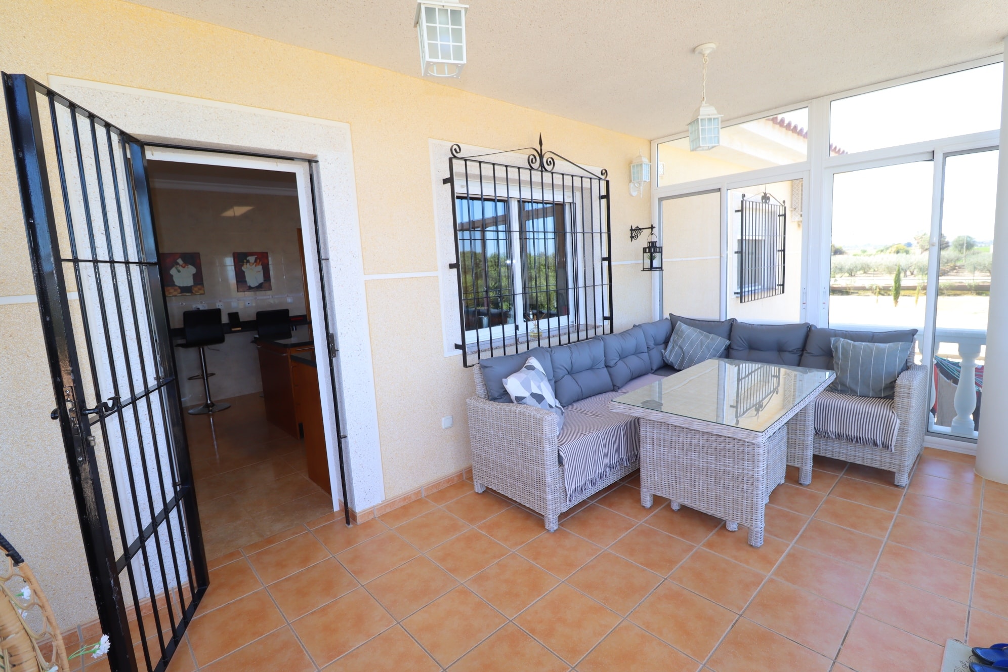 GLAZED SUN LOUNGE From the kitchen a door leads onto the enclosed back patio which has sliding windows and mosquito nets, overlooking the ornamental pond and has fantastic views of Lorca castle and town at night.
