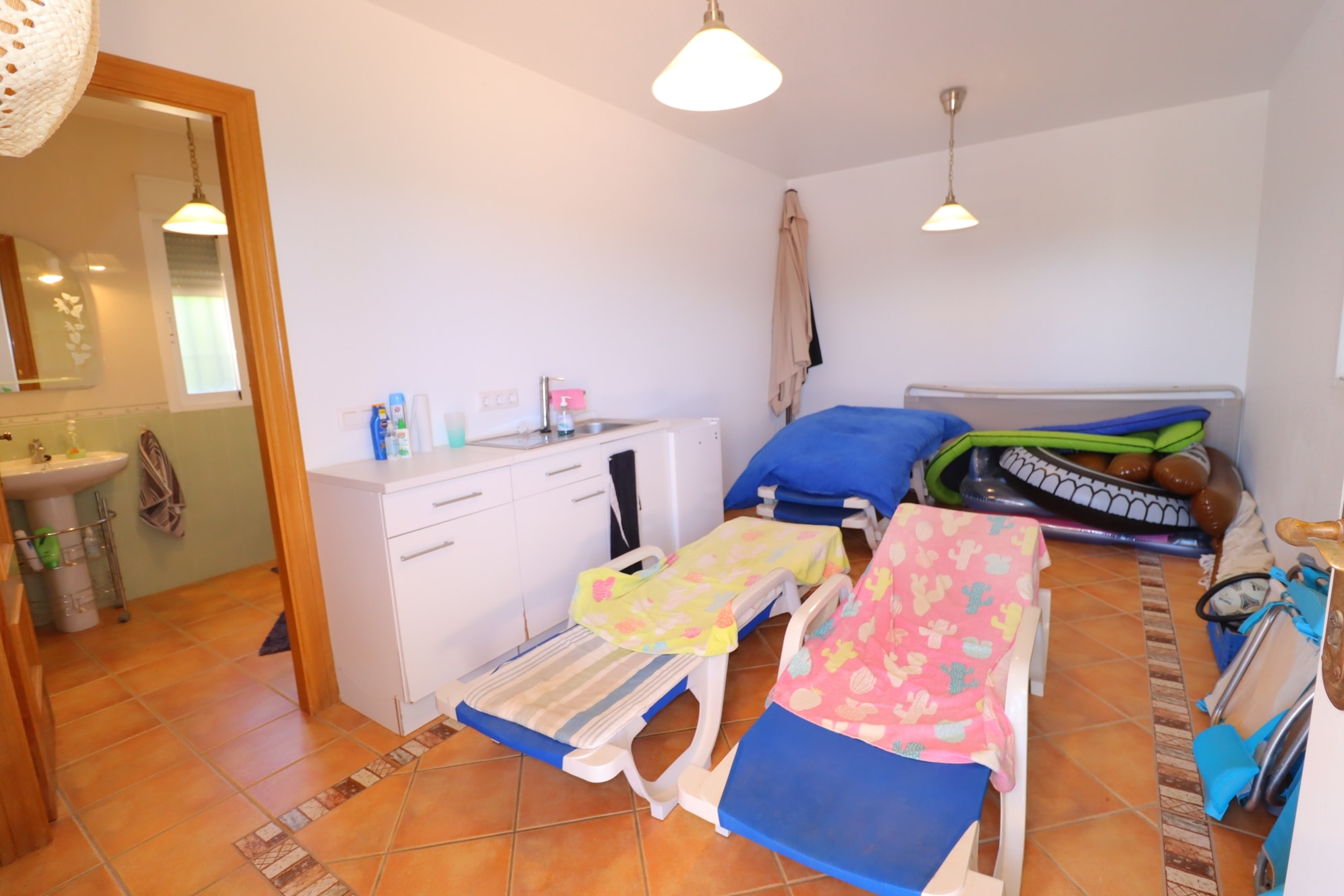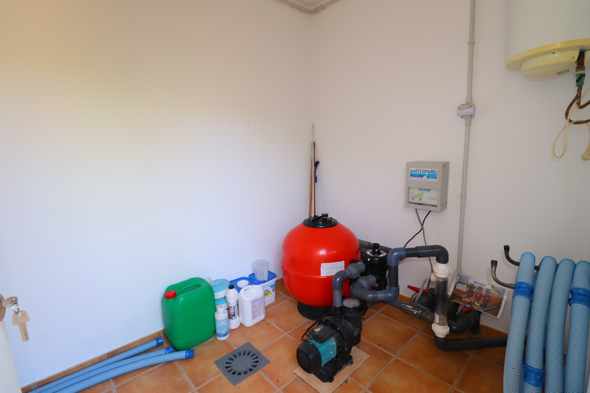POOL HOUSE AND SUMMER KITCHEN. Adjacent to the pool is the pool house and summer kitchen comprising of a small kitchen area, separate shower room and a lounge area. This could be used as an independent studio/apartment. There is a covered terrace overlooking the pool. To the rear is the pump house for the pool and the electric water heater servicing the studio.